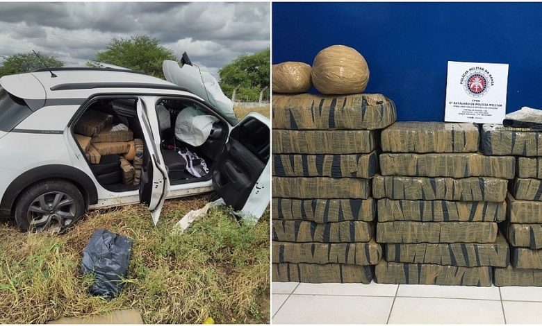 Duzentos e quarenta e sete quilos de maconha prensada foram apreendidos por equipes do 6º Batalhão de Policia Militar (BPM/ Senhor do Bonfim), na tarde do último sábado (16). O material estava em um veículo que trafegava na BR 407, no distrito de Aroeira, cidade de Filadélfia.