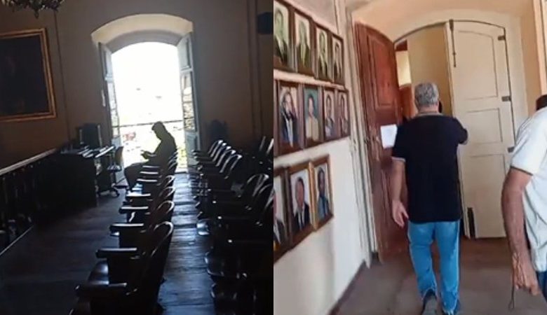 “Presidente da Câmara sabotando as sessões há um mês, ganhando tempo para encerrar o mandato da prefeita”, afirmou. “O vereador que substitui o presidente disse que vai presidir, e o presidente mandou os funcionários contratados irem embora para sabotar a sessão ou seriam demitidos”, acrescentou outra servidora.