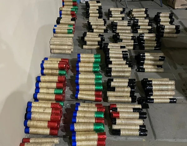 O material estava em caixas de papelão e sacolas, organizadas à beira da estrada, na localidade conhecida como Linha do Trem. Foram apreendidas 366 artefatos que seriam utilizados de forma ilegal nos festejos juninos.