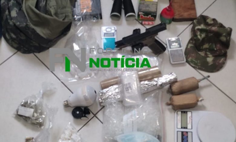 Ao perceber a aproximação da polícia, o suspeito tentou fugir, mas foi alcançado e preso pelos militares. Com ele foi apreendido uma mochila com drogas, arma de fogo e objetos pessoais.
