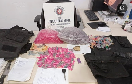 Segundo informações, a apreensão de 129 pinos cheios de cocaína, 3.000 pinos vazios, uma bucha de maconha, dois cadernos para anotações, 110 reais em dinheiro, uma corrente prateada, uma capa de colete, um porta acessórios, uma toca ninja, uma faca tipo peixeira e uma moto CG 150 Fan vermelha, de placa OUQ-9074, aconteceu no bairro da Portelinha.