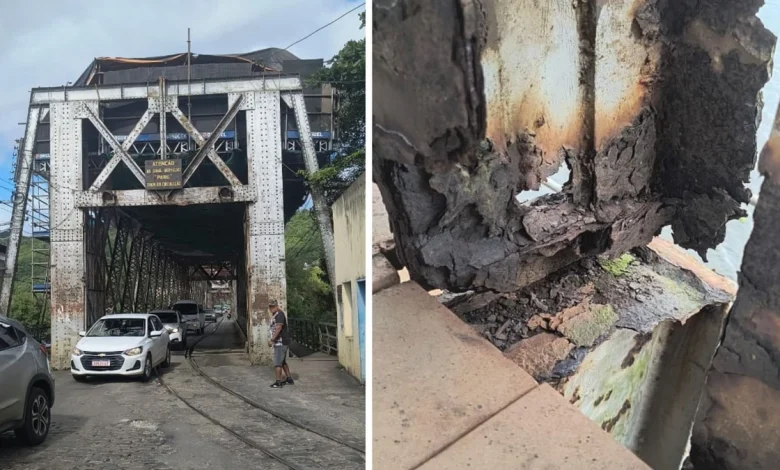 Imagens enviadas ao CORREIO mostram a deterioração da ponte construída em julho de 1885. A estrutura de ferro e madeira possui 365 metros de comprimento e foi importada da Inglaterra. A ponte foi considerada uma das principais obras de engenharia do Brasil na época e desempenhou papel de grande relevância no estímulo à economia baiana no século XX.