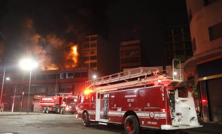 O Corpo de Bombeiros interrompeu os trabalhos de combate ao incêndio no edifício comercial, no Centro de São Paulo, após uma nova avaliação apontar risco de desabamento. O local permanece pegando fogo após mais de 40 horas. Por causa das chamas, diversos lojistas perderam seus bens já que o fogo consumiu o que tinham dentro do prédio.