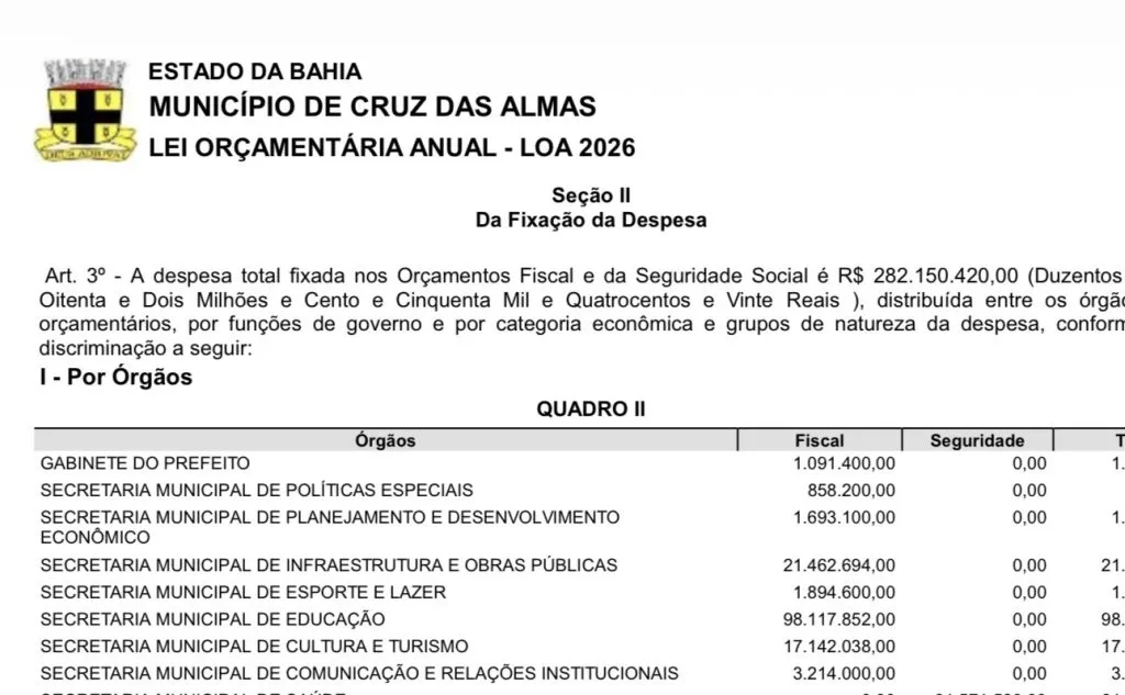 O prefeito Ednaldo Ribeiro encaminhou à Câmara de Vereadores o orçamento para 2026, estimado em R$ 287,9 milhões. A proposta, no entanto, acendeu um alerta: os recursos destinados a áreas sociais são modestos diante dos altos valores reservados para eventos, cultura e comunicação institucional.