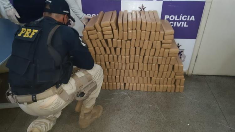 Ainda conforme a PRF, após verificação no interior do automóvel, foram encontrados 4 sacos contendo aproximadamente 50kg de maconha prensada em cada um. A droga estava envoltas em fitas adesivas.