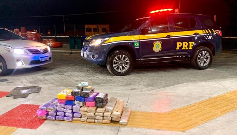 Desconfiados, os policiais decidiram fazer uma busca no Corolla. Ao vistoriar o interior do veículo, a equipe encontrou 44 tijolos de maconha, correspondente a 40 (quarenta) quilos, além de 12 tabletes de cocaína, que pesaram 12,5 (doze quilos e meio) e mais 30.000 reais em espécie sem origem comprovada.