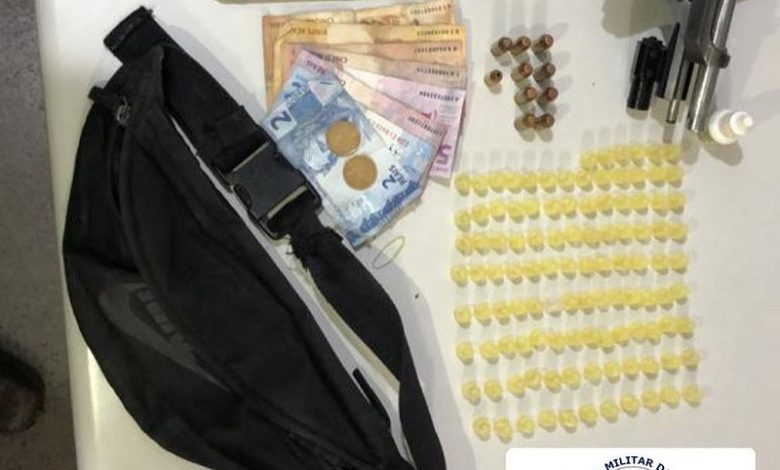 A Polícia Militar apreendeu uma arma de fogo e drogas no sábado, 19, no município de Muritiba.