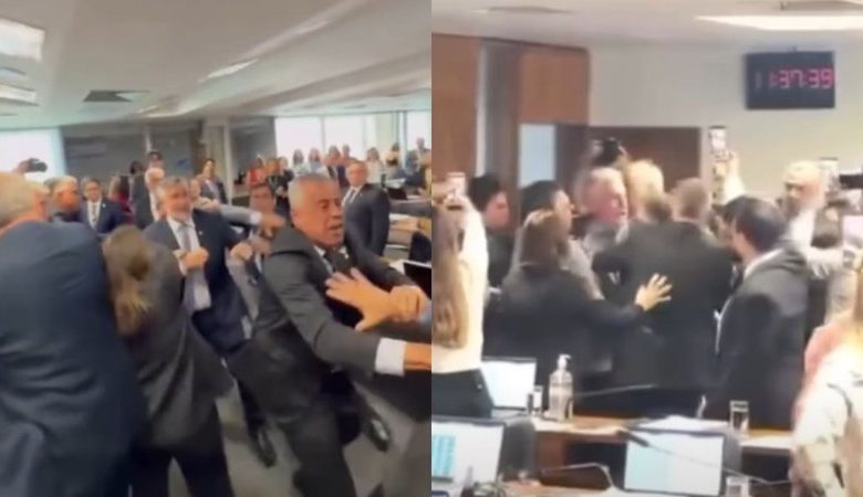 Após o bate boca entre parlamentares, o deputado Rogério Correia (PT-MG) acabou avançando contra o relator da CPMI e autor do pedido de requerimento, Alfredo Gaspar (União-AL) com ofensas e acusações. Na sequência o petista empurrou Luiz Lima (Novo-RJ), este que revidou com socos. Neste momento, a sessão que estava sendo transmitida pela TV Senado foi suspensa.