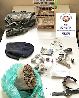 Segundo a polícia, agentes do Pelotão de Emprego Tático Operacional (PETO) faziam rondas, quando foram recebidos a tiros e revidaram injusta agressão. Durante o confronto, os indivíduos saíram correndo por uma região de vegetação e um deles correu para dentro de uma casa, atirando contra os policiais, que reagiram de igual forma. O homem, foi baleado no confronto e socorrido para o hospital, onde não resistiu, vindo a óbito. Ele foi identificado, como Lucas dos Santos, o “Diabo Loiro”. A polícia apurou, que ele era suspeito de ter participado de uma espécie de tribunal do crime, onde duas mulheres foram torturadas, no último dia (17/08) sendo, que uma delas foi baleada e socorrida para o Hospital Regional de Santo Antônio de Jesus (HRSAJ), fato divulgado aqui no site. Foram encontrados com Lucas dos Santos: uma embalagem com cerca de 500 gramas de maconha, nove trouxas de maconha, um pino de cocaína, dois relógios de pulso, um revólver adaptado para calibre 380, com munições deflagradas e intactas, touca ninja, um fardamento camuflado, R$ 5, 00 (cinco reais em dinheiro) e uma gaiola com um pássaro silvestre (Papa capim). Todo material foi apresentado na delegacia, onde o delegado titular, Luiz Castro Freaza, diante do exposto, expediu guias para remoção do corpo para o Departamento de Polícia Técnica (DPT) e instaurou um inquérito policial afim de apurar os fatos.