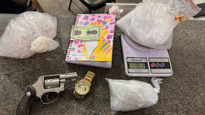 Foram apreendidos: um revólver calibre 38, um caderno de anotações, cerca de um quilo de cocaína, embalagens para acondicionar drogas, uma balança de precisão e um relógio. O corpo do nacional e todo material
