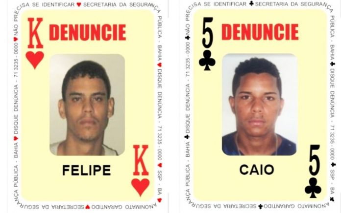 Segundo a SSP-BA, Felipe passa a ocupar a carta Rei de Copas. Segundo a polícia, ele atua no bairros de Castelo Branco e Vila Canária, possui passagens por latrocínio e porte ilegal de arma de fogo, cumpria pena no regime semiaberto, na Colônia Penal de Simões Filho, de onde fugiu no dia 8 de agosto do ano passado.