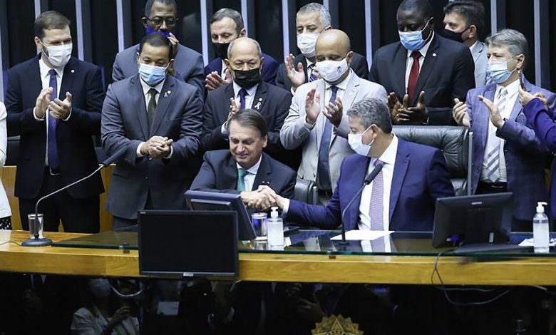 Pelas mãos de Arthur Lira, presidente Bolsonaro recebe medalha Mérito Legislativo 2021