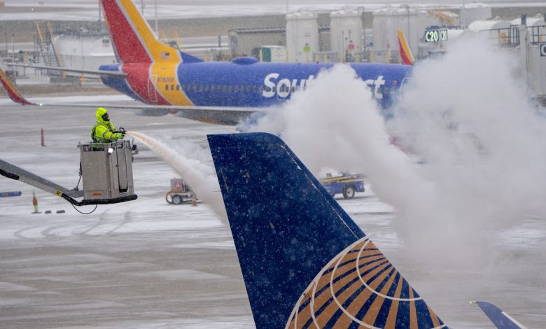 Quase 2 mil voos programados para quinta e sexta-feira foram cancelados, incluindo mais de 700 partidas e chegadas em dois grandes aeroportos de Chicago, de acordo com o serviço de rastreamento de voos FlightAware. Centenas de voos foram cancelados em Denver.