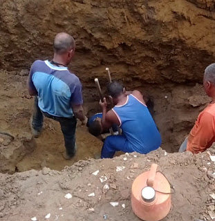 Três homens foram soterrados no início da tarde desta quinta-feira, 6 de maio, em Muritiba. O acidente aconteceu numa obra da Prefeitura Municipal no bairro do H. As vítimas foram identificadas como Biro Biro, Glauber e Jack.