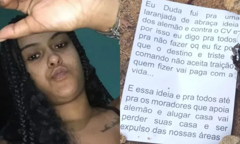 “Eu digo a todos para não fazer o que eu fiz porque o destino é triste, e comando não aceita traição. Quem fizer, vai pagar com a vida”, diz uma parte do bilhete, O recado faz ainda um alerta os moradores que alugam casas para rivais. “Vai perder suas casas e será expulso das nossas áreas”. A suspeita, é que Eduarda