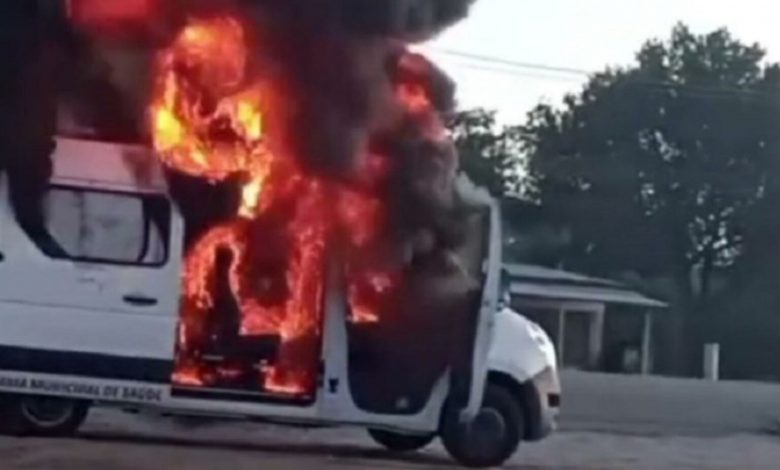 Uma van da Prefeitura de Sapeaçu, usada para transporte de pacientes, pegou fogo na manhã desta sexta-feira (08) na BR-324, nas proximidades do Posto Coqueiro.