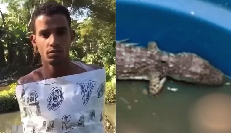 Vaza vídeo de desafeto do CV sendo jogado para ser devorado por jacarés