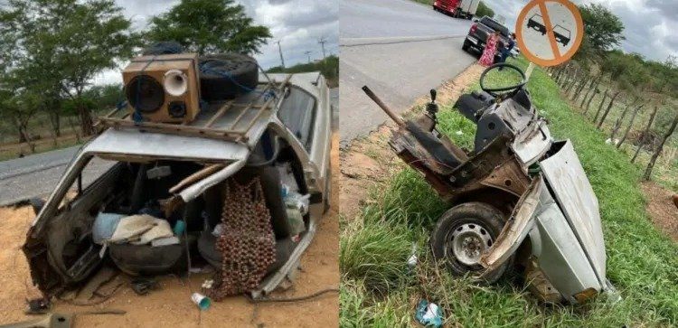 Um veículo do modelo Voyage partiu ao meio após colidir com outro veículo na BR-110, em Jeremoabo, na região nordeste da Bahia. O caso ocorreu nesta quarta-feira (10).